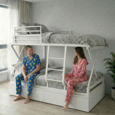 Nuestra litera plegable convertible es ideal para dormitorios juveniles, habitaciones de invitados, segundas residencias, apartamentos vacacionales, campings u otras instalaciones.